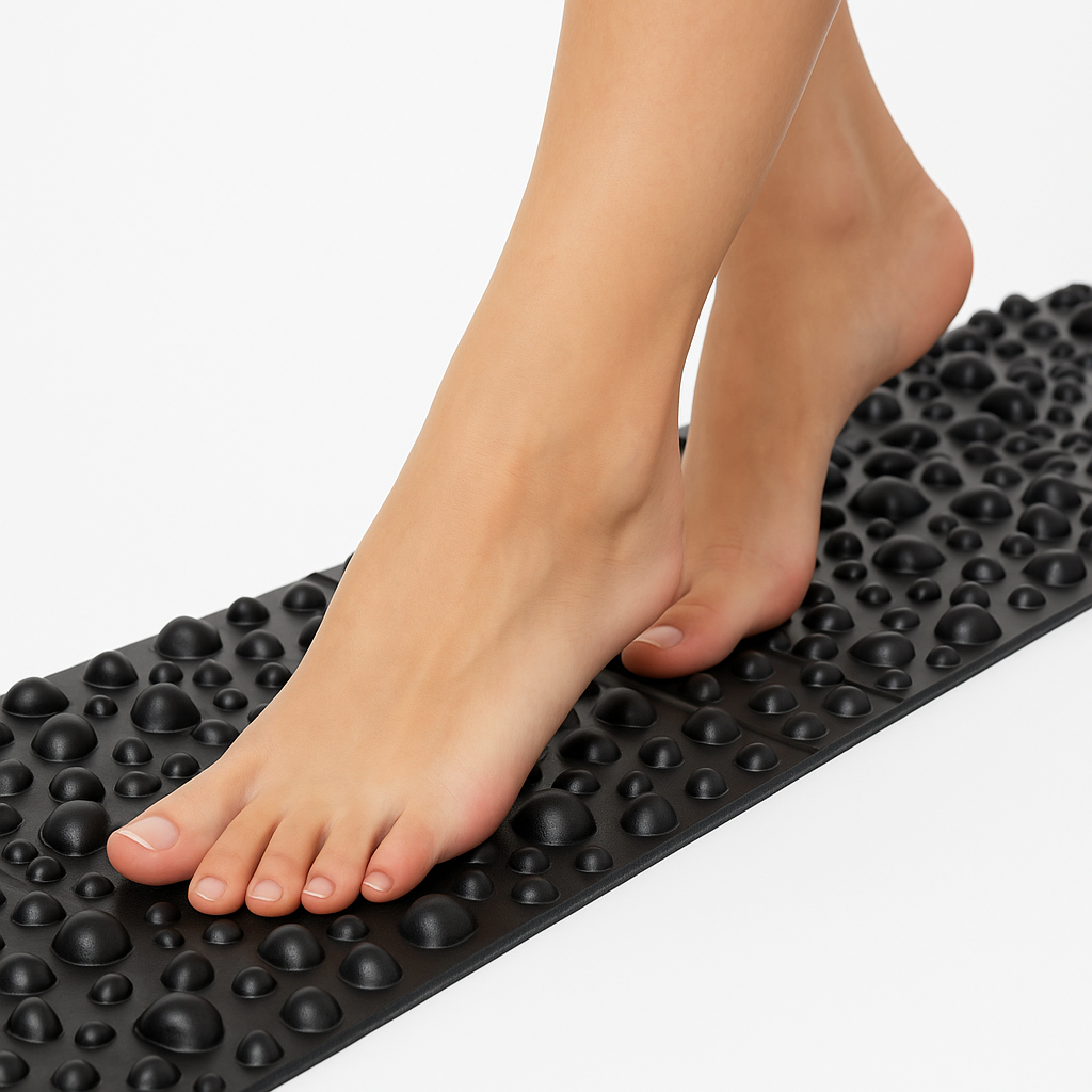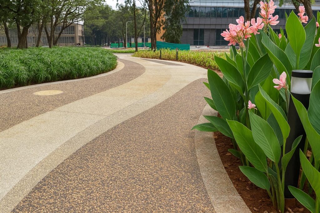 Walking barefoot on Balaji Anti-Skid Stonecrete or Pebblecrete surfaces provides a gentle acupressure feeling, similar to a natural foot massage — relaxing, refreshing, and naturally beneficial.
